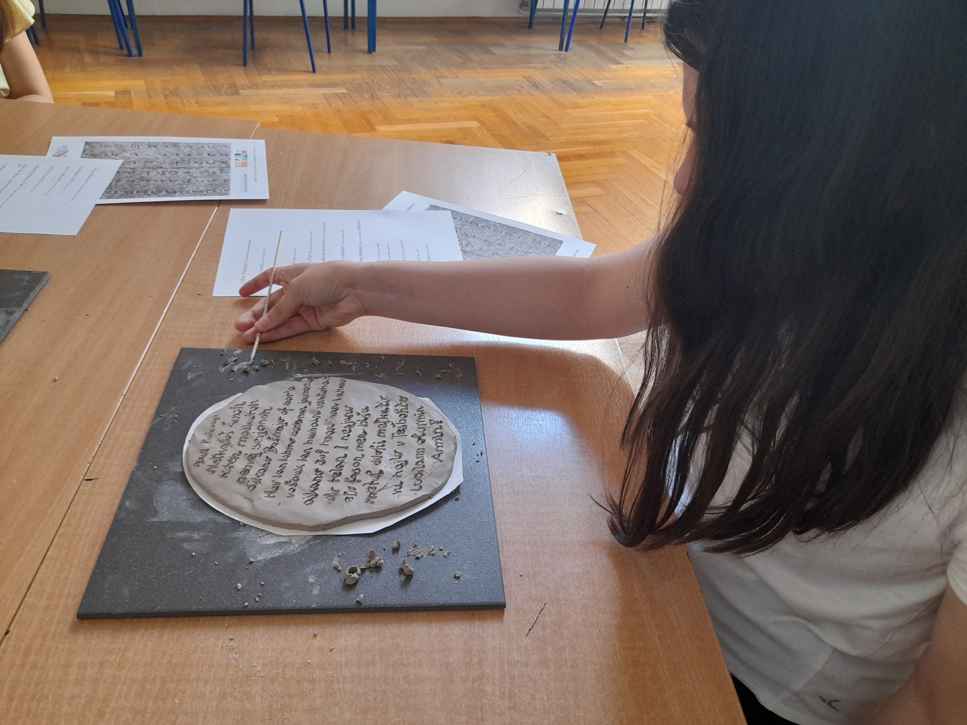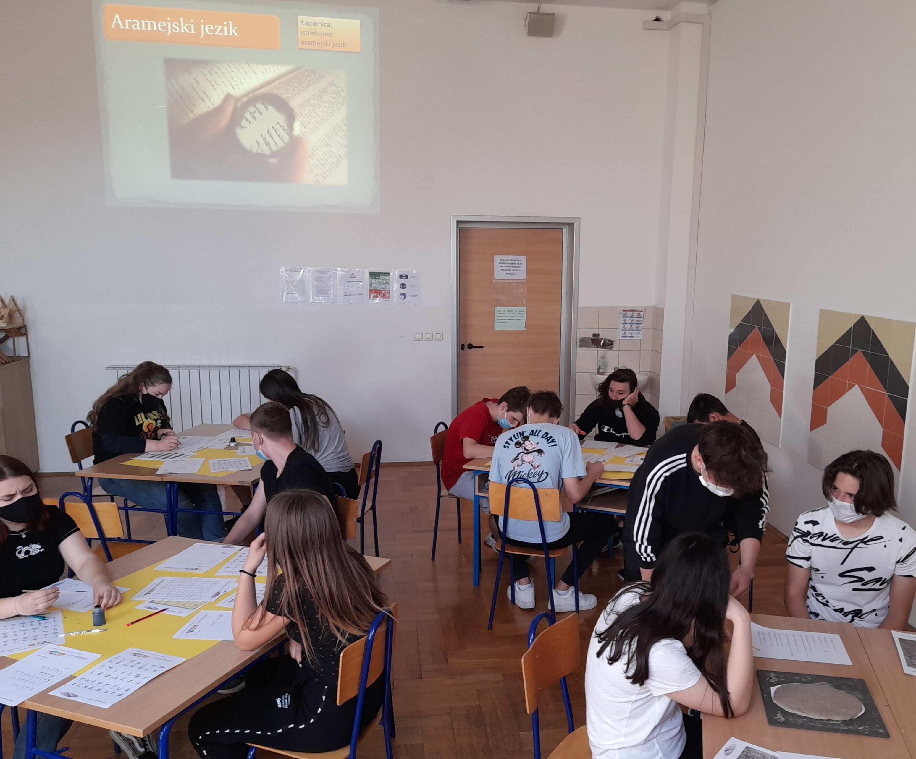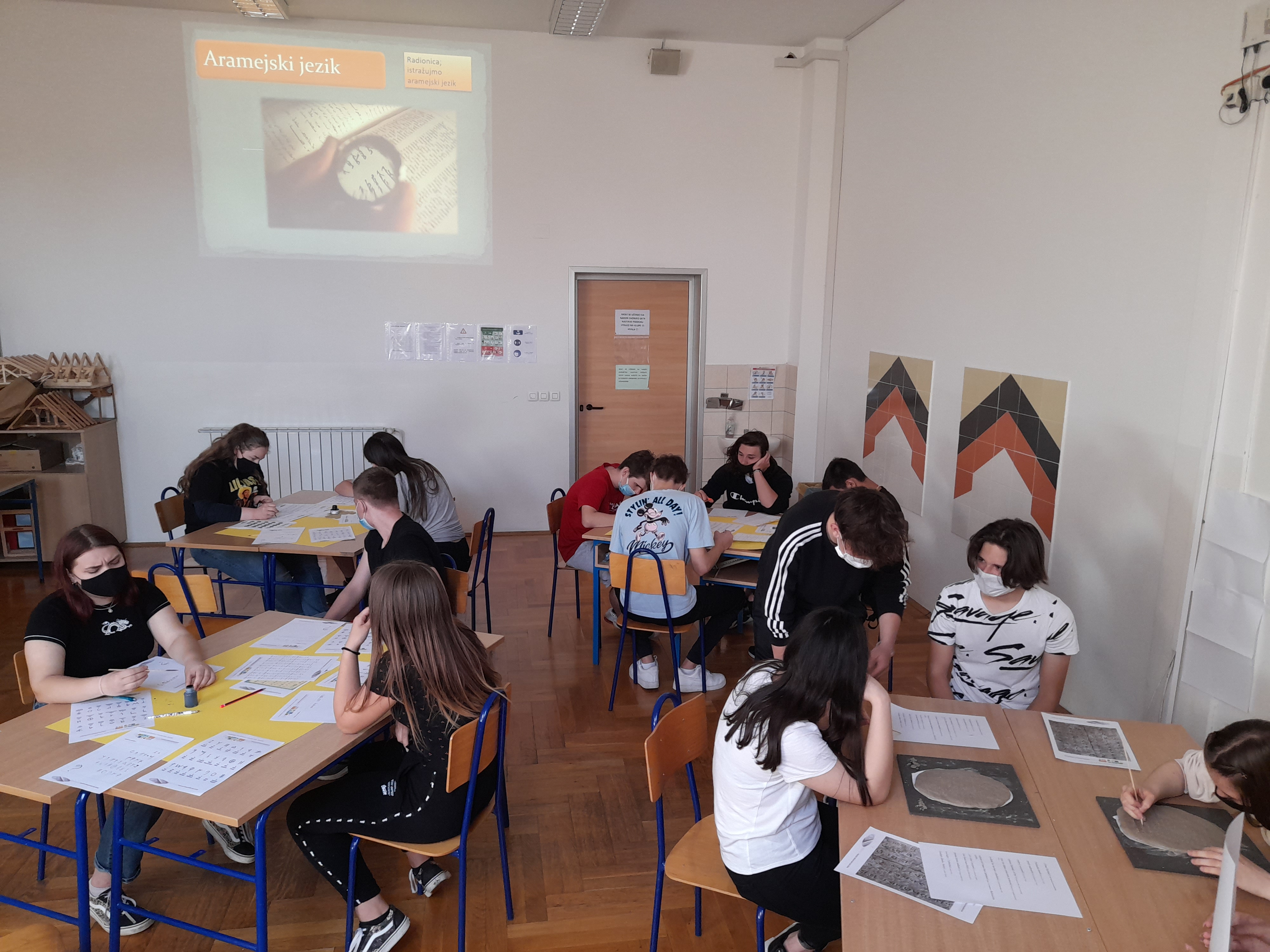 Tijekom radionice učenici su se upoznali s aramejskim jezikom, načinom pisanja i čitanja toga staroga jezika. Učenici su se okušali i u pisanju na aramejskom jeziku, a pisali su po glinenim pločama, pišući molitvu Oče naš koju nas je naučio Isus Krist.