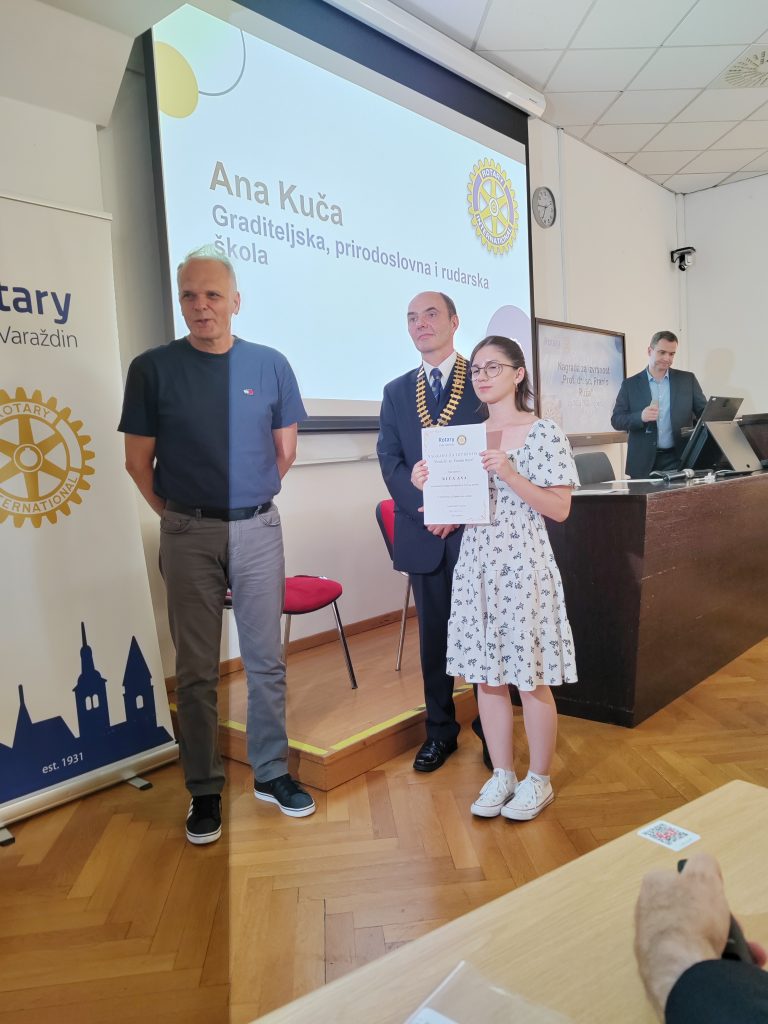 Učenici Graditeljske, prirodoslovne i rudarske škole koji su na državnim natjecanjima osvojili prva mjesta nagrađeni su nagradom za izvrsnost Rotary cluba Varaždin “Prof. dr. sc. Franjo Ruža” Nagrade su dobili Karlo Levanić, Dino Mlakar Krasulja Tena Henec i Ana Kuča. Svečanost dodjela nagrada održana je 17.6.2024. na Fakultetu oranizacije i informatike.
